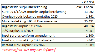 De bovengenoemde 'frictiekosten' zijn eenmalig en hebben alleen betrekking op 2026. Daarom stelt het college voor om deze kosten te dekken uit het surplus van de Algemene Reserve. Dit vereist echter wel extra ruimte binnen het surplus. Zie daarvoor de technische maatregel 'Integraal Huisvestingsplan (IHP) alsnog dekken uit Enecoreserve i.p.v. Algemene Reserve'.